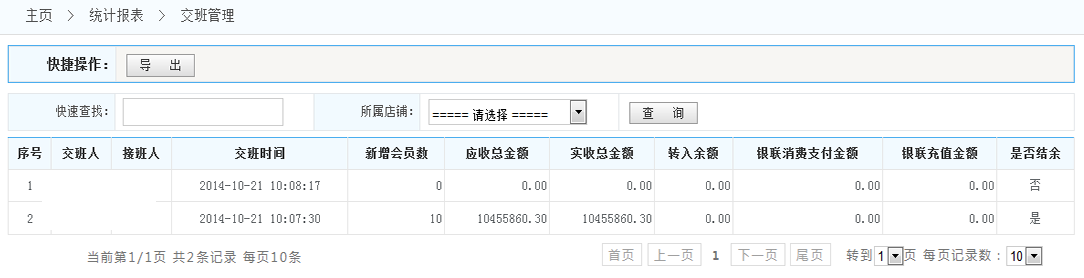 交班管理統(tǒng)計:查看所有交班管理情況